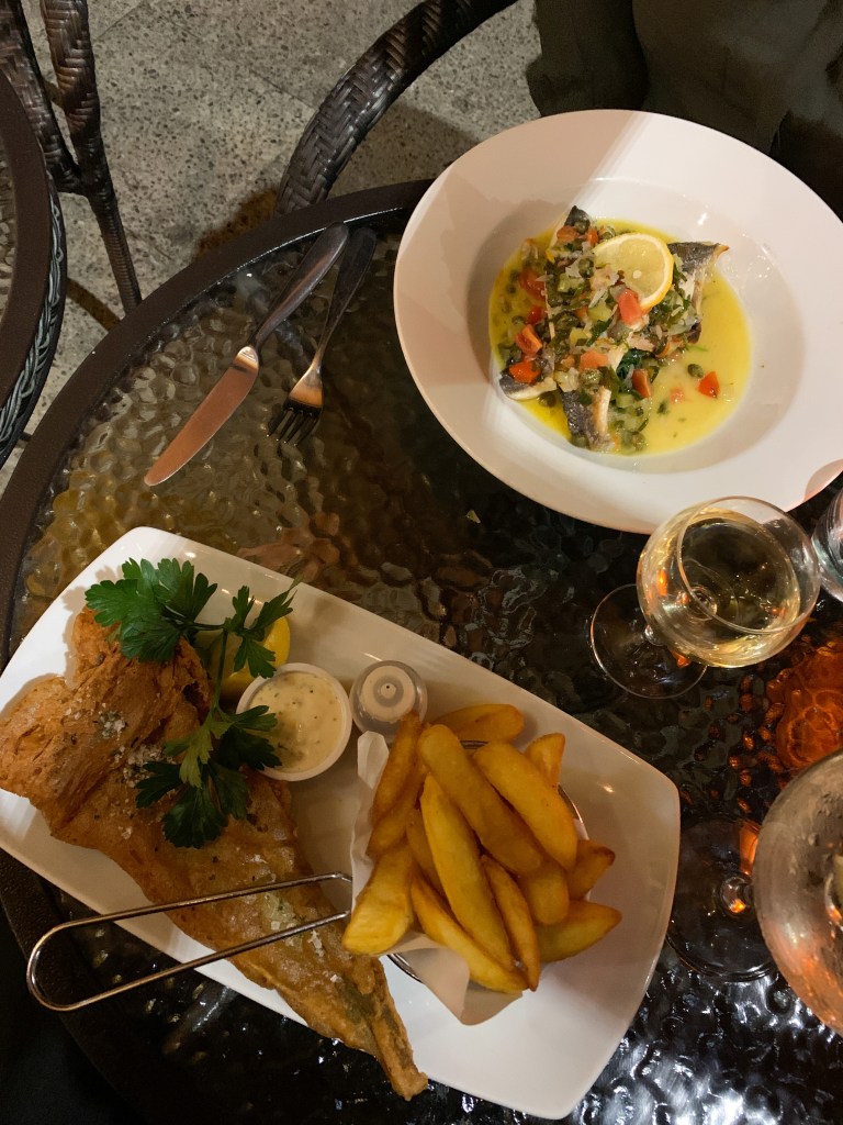 After a de-sanding and a clothing change we headed for dinner at Little Ships Restaurant in the harbour. We had drinks here the night before and the food seemed delicious so it only seemed right to come back and see for ourselves! The menu was fairly small (possibly covid related) but still a good selection of options. Our starters varied from Crispy squid, to a traditional prawn cocktail and a goats cheese and red onion tart. All so so good and such good portion sizes too. Mains were also tasty – a catch of the day, beer battered cod and chips and a chicken escalope. I did have my eye on the mussels but unfortunately they were all sold out, so if you make it and you try them, let me know what you thought! Totally stuffed after two courses so no desserts sadly. We headed back to our Airbnb after dins for a nightcap. There were bars around which were open – even on a Tuesday night, so if you’re looking for somewhere for a drink there were plenty of places around!