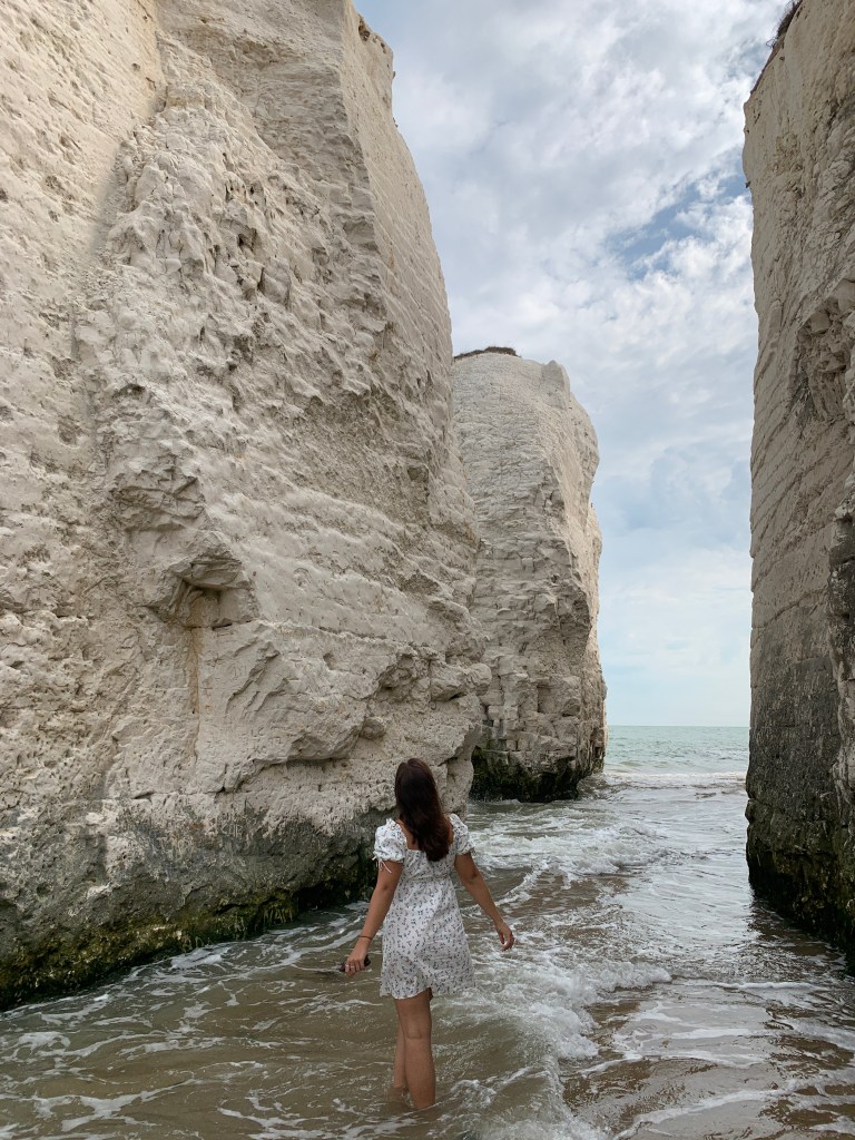 Our last day of our mini-cation and we headed out after leaving our lovely sea view apartment to a spot further along the coast than Broadstairs. Joss Bay was recommended as a lovely beach spot so we parked here and wandered along the coast to Botany Bay. The walk was only 20ish mins along the viking trail but if you’re more interested in beach chilling, I’d go straight to Botany Bay as it was a little bit nicer! Although it wasn’t as hot, the beach is fairly sheltered (and very few seagulls, yay) and it was warm enough to paddle. If you’re visiting when the tide is out then its worth taking a wander along the beach through the cliffs, but be careful of the tide times as it can change quickly and there wasn’t a lifeguard.