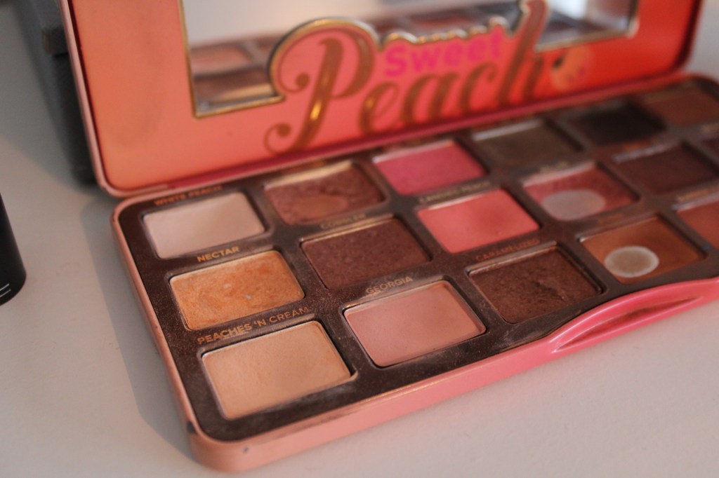 My three faves are good for any eye colour and skin tone as they’re a range of neutral and nude colours with a couple of brighter or darker extras. The one I love more than anything is the Too Faced ‘Sweet Peach’ palette. It has the most beaut range of colours from a shimmery white and warm toned cream to a sparkly black, dark purple and the prettiest green. The palette smells insane and I use the warm brown tones for my everyday looks as they’re matte and then using my finger tip add a shimmer colour or lighter colour to the inner area of my lid for a nice subtle two toned smoky eye look which is super simple! I take this palette everywhere, from holidays to trips away, because I just cannot go without it. I’ve had the palette for over 3 years and whilst I’ve hit pan in a couple colours, there is still plenty in those squares and the rest are still completely full. It’s still available and costs about £40, which may seem pricey BUT (and hear me out here) if you are going to buy one palette which does everything then this is the one you should get. It is absolutely worth the money as the colours suit everyone and work amazingly for any occasion.