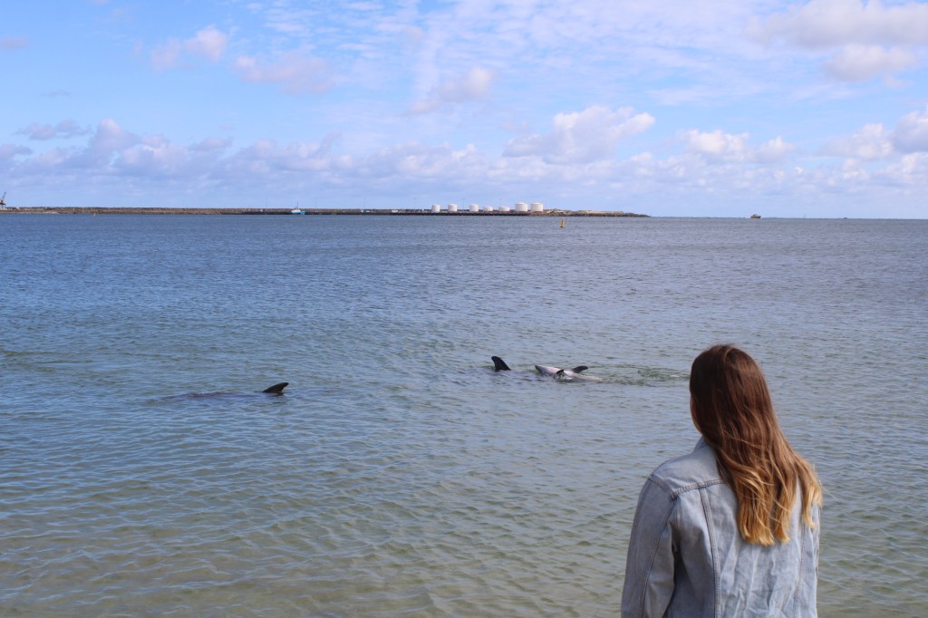 First morning of waking up back in a camper which was so nice. Today was an early start for one of the most exciting parts of the road trip; hopefully meeting some wild dolphins! Hans hint: Make sure the night before you’ve factored in your distance (we had a 45-minute drive from our freedom camp) back to Bunbury as you’ve got to arrive early. We left just after 7 and headed to the Dolphin Discovery Centre for 8am sharp. Led by the volunteers at the discovery centre, you can join them in the water whilst the wild but local dolphins (hopefully) will make an appearance. We had the best morning, stood in the water with our dresses in our bikini bottoms watching the dolphins swim around and play with each other. We even got to see a 2 week old baby who came back with her mum, who some of the volunteers remember as a baby herself!