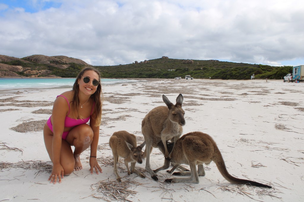 The National Parks has a fair few paid campsites if you wanted to stay closer but make sure you book well in advance and there’s even a small café and toilets at Lucky Bay itself. We felt we had enough time at the bay by spending just a day but definitely make the most of it and if you can afford it stay in the National Park for sure.