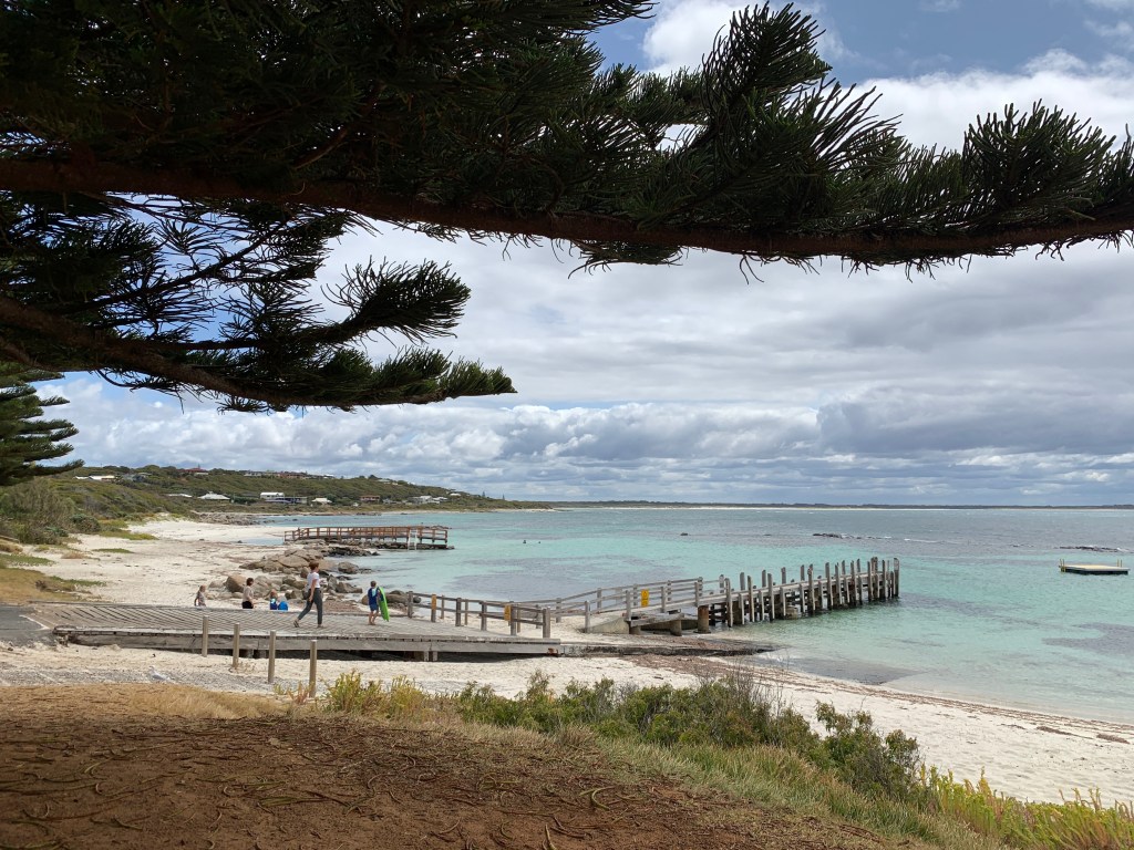 After Hamelin, there’s a fair few things to. On the way to the bay, you’ll notice signs for caves and tere’s 4 in total that you can visit, and you can buy a ticket which allows you access to all four. Whilst we didn’t do a tour of the caves as we wanted to crack on, the ticket options especially if it’s a rainy day are worth considering. Not too much further is Cape Leeuwin which you can pay to enter and climb to the top of the lighthouse. The views look spectacular and you can see where the Indian Ocean meets the Southern Ocean. If you’re not too fussed about the lighthouse visit but want a photo, there’s a couple of view points on the way which are always worth a look at as you drive in and this is all we did. If the weather is sunny and hot, on the road in and out of Cape Leeuwin is a small turning off which leads to a very cute beach; Flinders Bay. A stop and look is worthwhile even if you’re not tempted by a beach stay! Even though the weather wasn’t great on our day, it was warm and so I went for a dip in the sea as it was a proper enclosed area to swim in which was really nice. The small town by the beach and lighthouse has a good camping shop too if there’s anything you might last minute need (extra gas is always handy) and is a good opportunity to refuel.