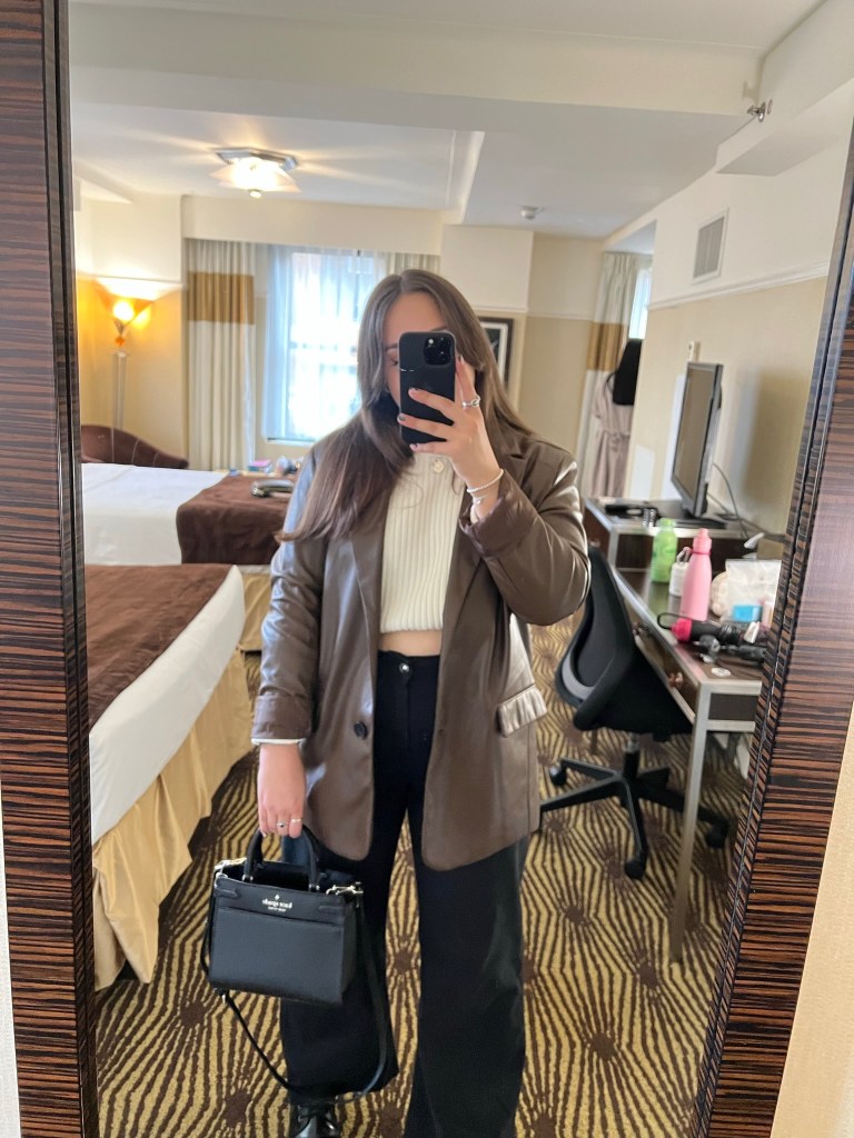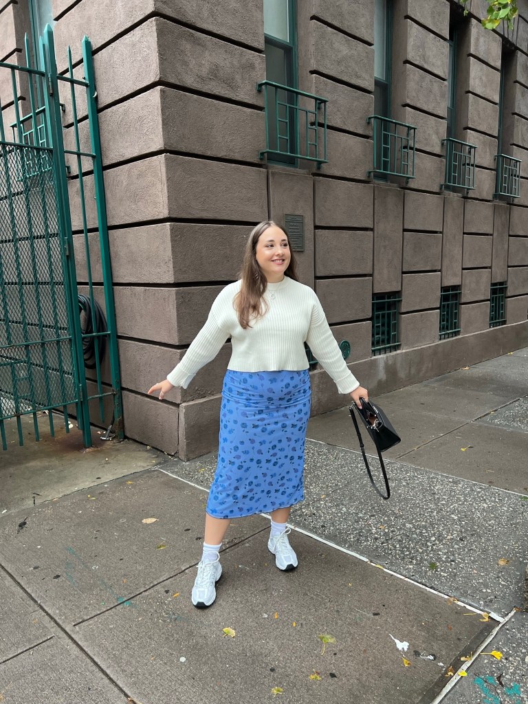 I wore 5 completely different outfits by swapping out pieces and this made my suitcase lighter but didn’t make me feel like I was repeating too much. I did have a change of outfit for the night we went to see Chicago but other than that, I kept to the 5 days and minimised what I took as much as possible! If you’re heading to NYC in October, you’ll likely have similar weather so think midi skirt, cropped jumpers, a pair of jeans or long trousers, trainers/DM’s (will forever love my DM’s haha) and light jackets such as a trench coat or cropped jacket.
