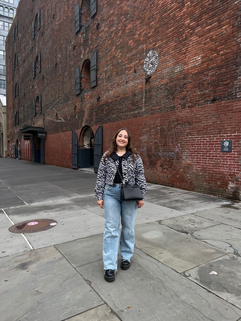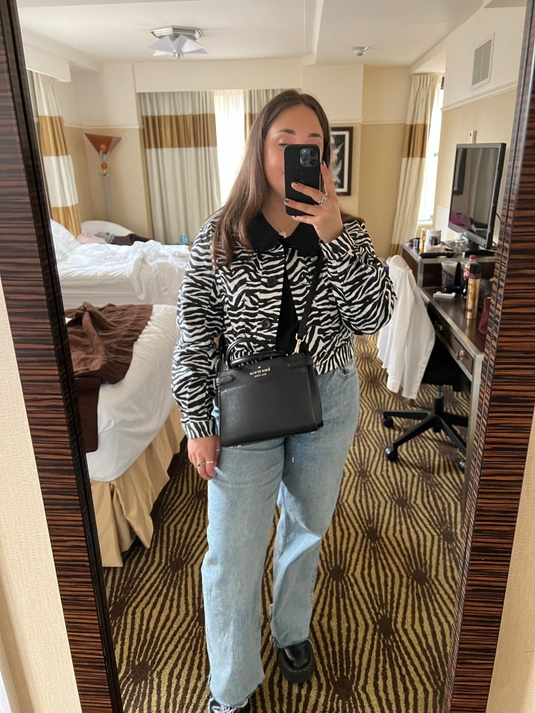 Day 4’s was super simple, but so comfy. The zebra jacket is an absolute staple of mine. I couldn’t believe my luck when I found it on vinted! The top is M&S and a repeat from day 2 – I love the oversized collar! Again, another super comfy outfit which without the jacket is really simple but perfect for city exploring.