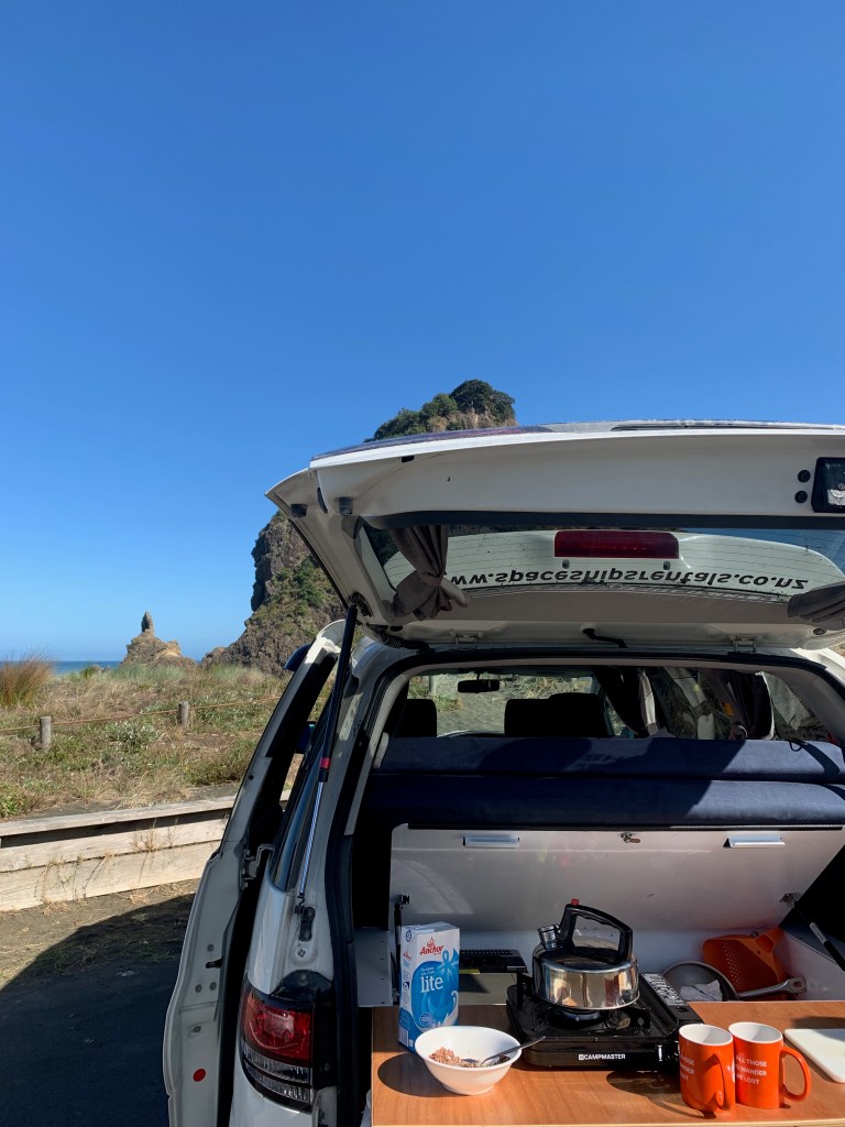 Despite these criticisms we had a really good time on our roadie, there was just a few issues here and there that felt a bit unnecessary and let our experience down a smidge. I do wonder if we would have had these issues in a van that was from a bigger company. For example, we paid one amount for the Barefoot campervan hire and everything came included, but we then had to purchase basic items (e.g. kettle) that we assumed would be included. With the Spaceships hire, we had to pay an extra $40 for the chairs and the outdoor table. Despite the annoyance of having to pay a bit extra with Spaceships, we were provided with better utensils/crockery and we had curtains that went all the way around the inside of the van so we had full privacy. The Spaceships van just felt a little more finished and we possibly spent more than $40 on the things not included in our Barefoot camper.