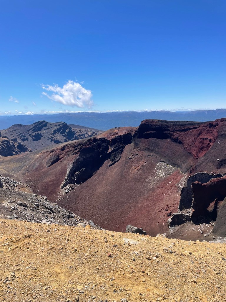 Besides the bit of slip and slide, from the South Crater the climb is fairly short up to the peak. At the top, the views are really really incredible. The Red Crater is an impressive sight, and the walk will go round this ridge so you’ll be able to get a good view of that and across the a lot of the North Island. The crater was created around 3000 years ago from a volcanic eruption, made red from the oxidised iron in the rock.