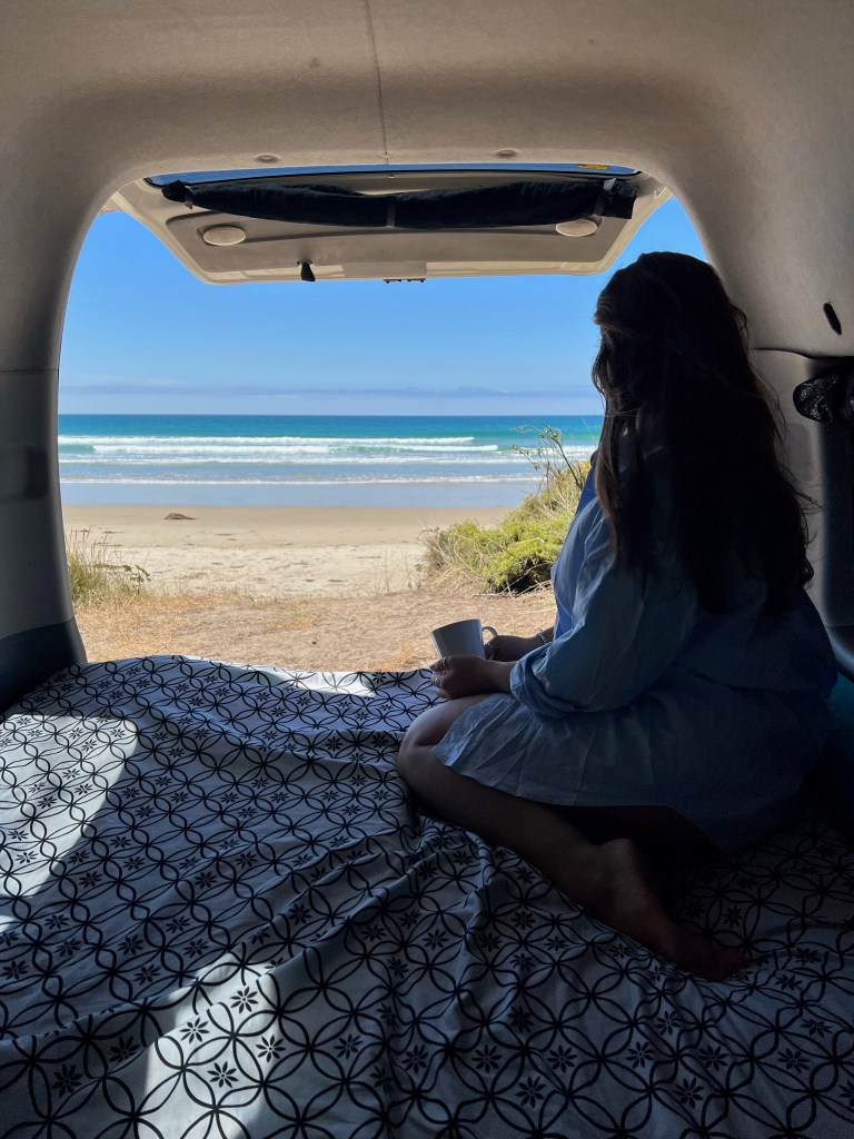 Wake up early and leave Whangapoua and head up to the Coromandel Peninsula. This is an area that really cannot be missed as there is so much to do and see. We headed to Cathedral Cove as this was my favourite spot in 2020. Hopefully you’ll get to Cathedral Cove mid morning, so that you can spend the afternoon on the cove’s beach. There’s a walk down to the cove from the top of the cliff which is fairly easy but in the heat it can be a bit harder. If this sounds good, park up in the Park and Ride carpark and then get the shuttle bus to the start of the walk. The timetable is located in the carpark, so you can work out what time suits you best. We wanted to spend a few hours on the beach, so we took a later bus back. After you get back from the cove, drive over to the freedom camp South End Reserve. It’s a lovely spot to spend the evening.