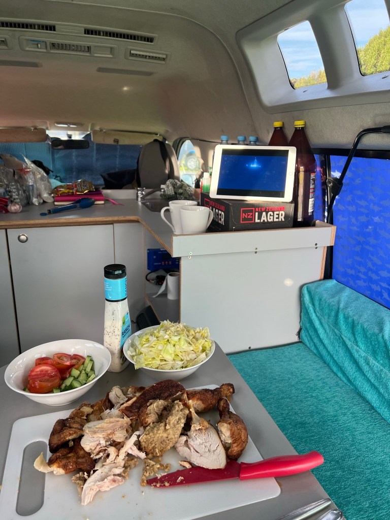 After collecting your van, I’d recommend choosing a site nearby so that you can grab the food you need from the supermarket or the camping essentials from The Warehouse or Bunnings. Both shops are close to Auckland airport! After we’d food shopped, camping shopped and fuelled up with petrol we were ready to get to our site and settle in. We settled on Arataki CSC Overnight Parking Area so we could unpack and settle before enjoying our first camping dins. It was a Low Cost Campsite, but it worked perfectly for us. I’ve linked the full list to our North Island Sites here.