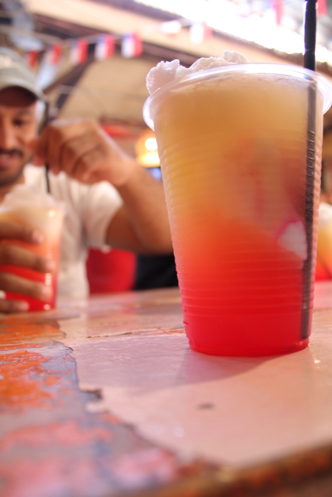 Once you’ve exhausted your feet and brain with the walking tour and museum visit, it’s time to head over to La Piojera for it’s famous cocktail, the Terremoto! Since its creation in La Piojera in 1985, this earthquake named cocktail has become a huge part of Chilean culture. Made with white wine, grenadine and pineapple ice cream, it seems like an odd combination that I was so unsure of trying – I am not a fan of wine (a disgrace in Chile, I know) but once the ice cream had melted a little and it mixed together, it was really good. Everyone at the table managed to cover themselves in the drink as the plastic cup is absolutely filled to the brim, so just a future warning in case if you’re wearing something light coloured!