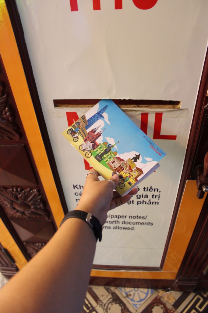 I love sending postcards – I’ve written them from most of the places I’ve travelled, so when we found out that the Saigon Central Post Office was famous for sending postcards it was rocketed to top of my to do list in Ho Chi Minh. The post office is a beautiful building so even if you’re not interested in sending a postcard, the building is worth a look. I would recommend sending one. I’ve always sent them to someone, but looking back now, I wish I’d also sent one to myself with a little note on what I’d done that day, something to look back and read from past me. Anything to keep the travelling memories alive!
